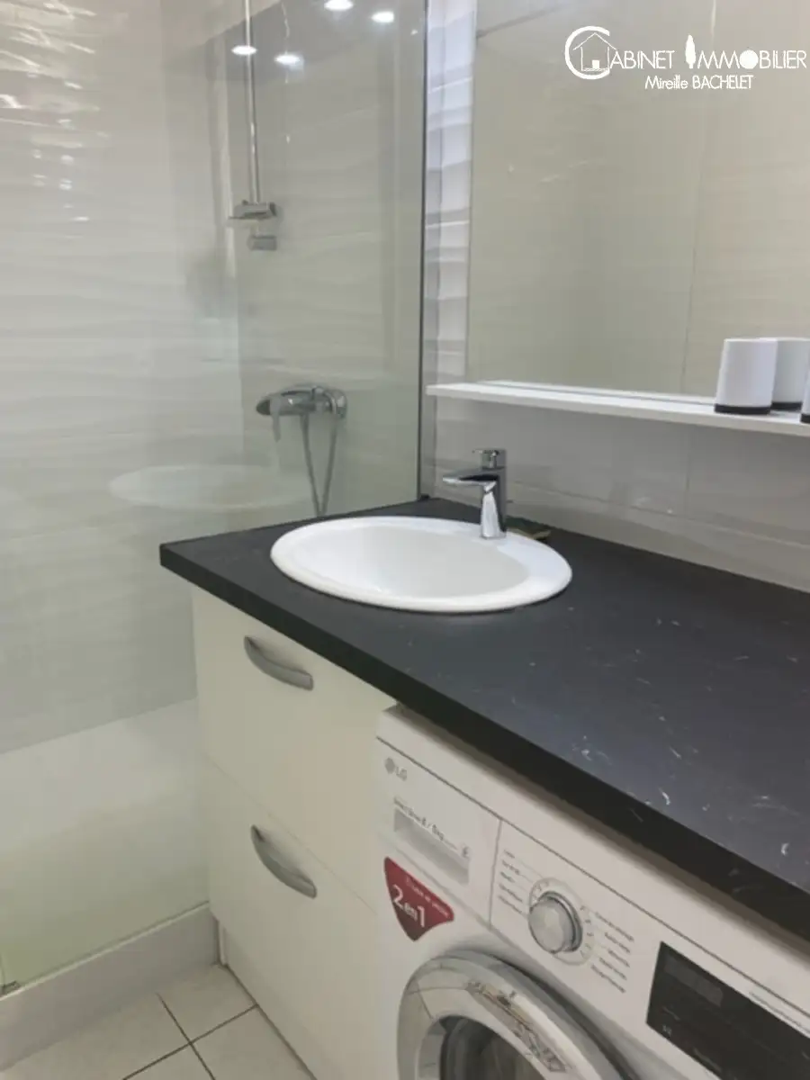Salle d'eau très fonctionnelle. Place de parking privative en extérieur . possibilité de mettre 2 véhicules: 1 derrière l'autre.