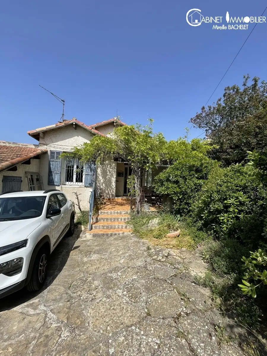 Maison avec jardin à 5 minutes à pieds du centre du village et au calme total.Jardin,terrasses,véranda, séjour, cuisine, deux chambres, une salle de bains, climatisation neuve. Endroit au calme car situé dans une impasse.