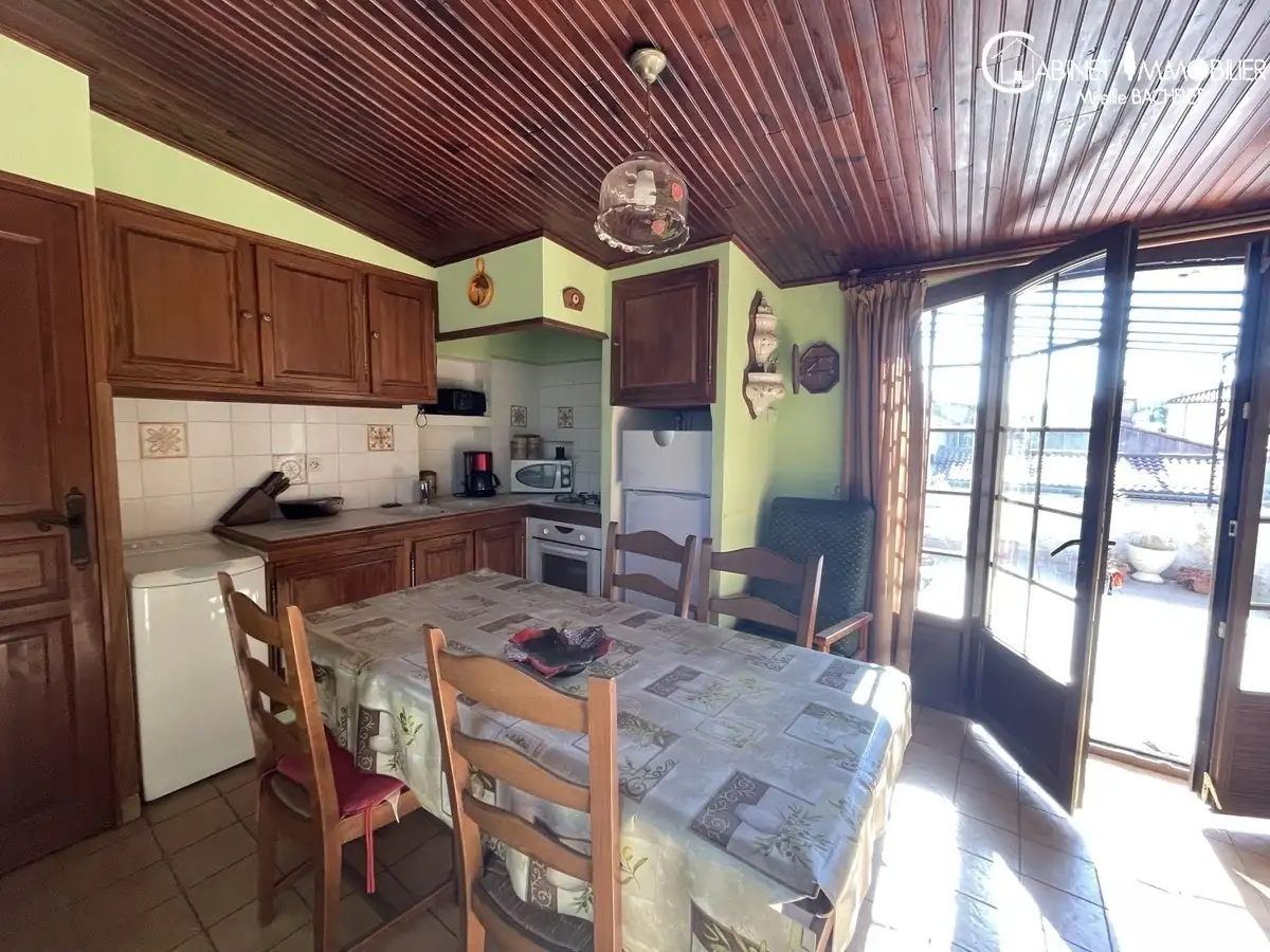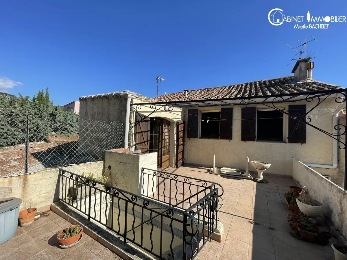 Ceyreste. A 2 pas de la Mairie, appartement qui se présente sous forme de maison de village et qui se vit comme une maison car a son entrée privative sur la Place. Au rez de chaussée petite surface pour ranger vélo, poussette,et un escalier mène à la terrasse qui domine la Place et les environs. Parking très facile, pratique et gratuit.Un escalier nous mène à une grande terrasse exposée Est/Ouest/nord sur laquelle ouvre la cuisine. 3 marches nous mènent au niveau au principal qui est traversant Sud/Nord. Grand séjour avec une belle mezzanine et un cagibis, 2 chambres, un bureau, une salle d'eau récente, un wc séparé. Le séjour et les chambres ont des fenêtres en simple vitrage.