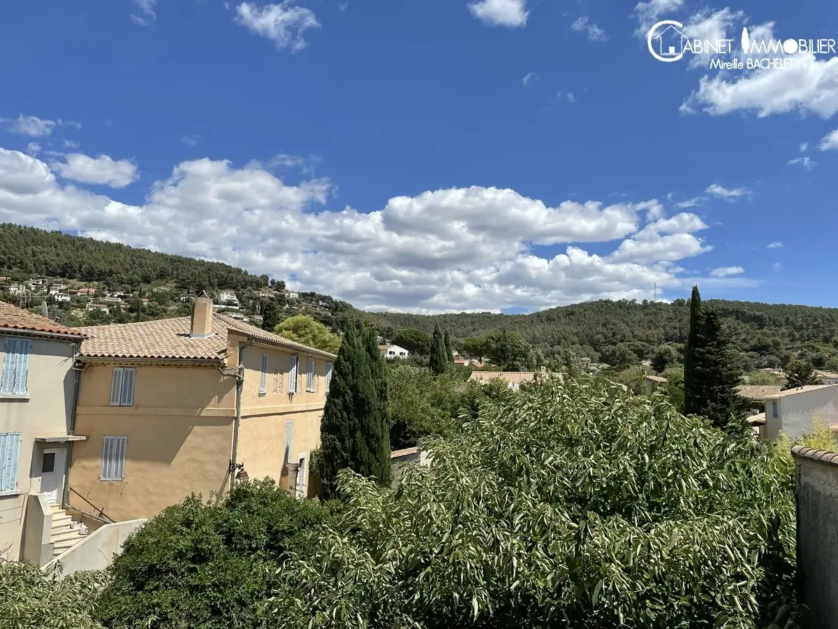 Magnifique vue sur le village, le clocher, la colline de Sainte croix, les crêtes de La Ciotat et un aperçu mer...