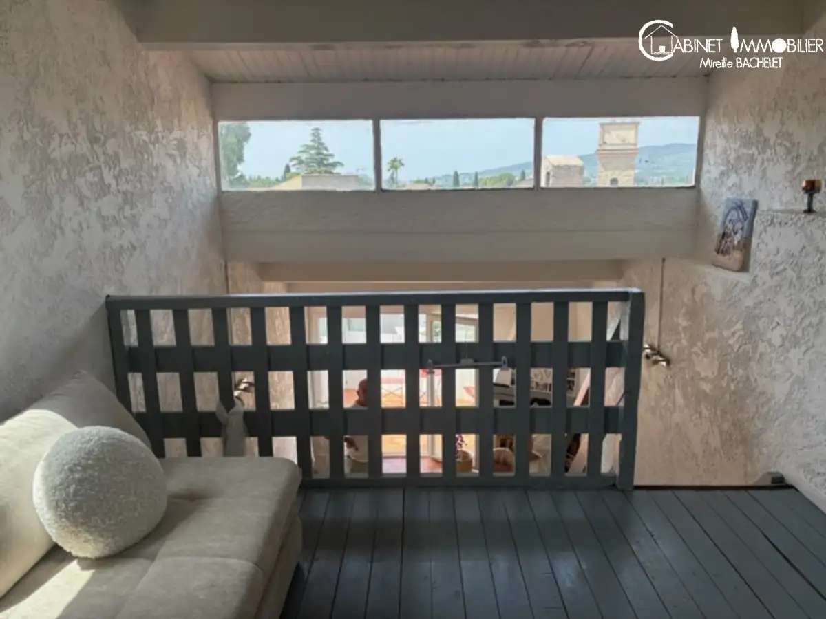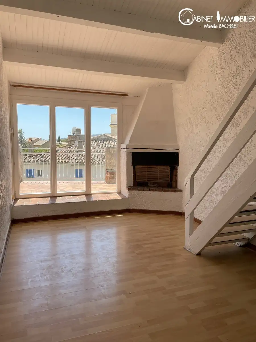 Appartement composé d'un escalier privé qui nous mène au séjour ouvrant sur une terrasse Sud par une porte fenêtre.