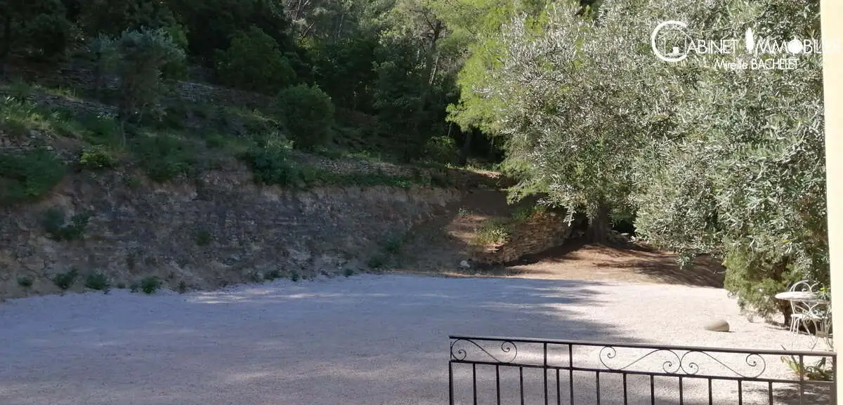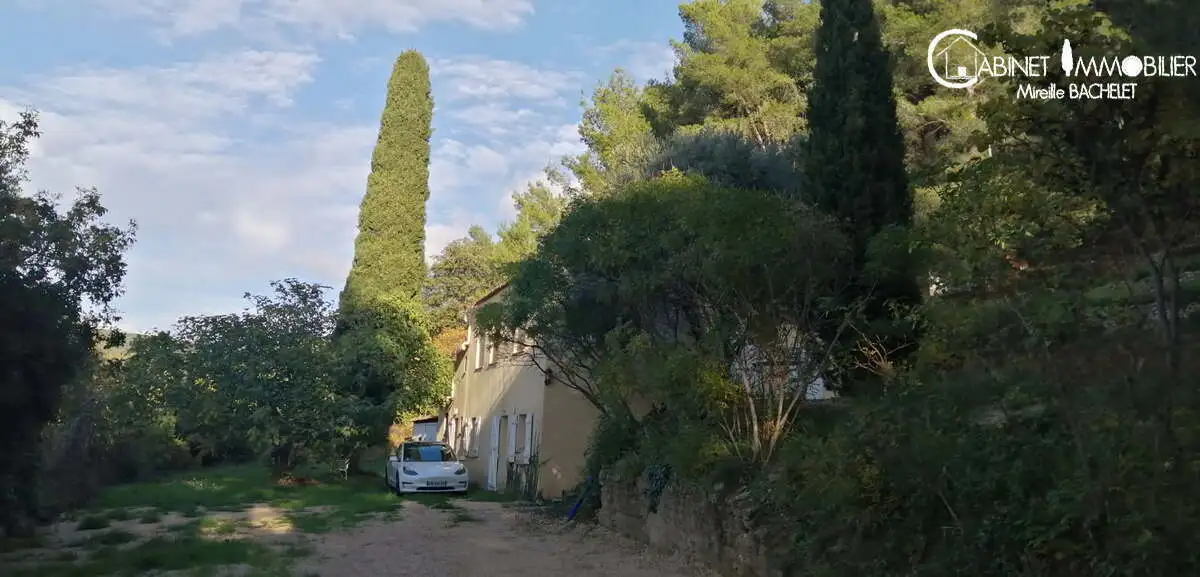 Ceyreste, au calme absolu avec une vue verte à couper le souffle! Sur plus d'un hectare de terrain, maison sur deux niveaux offrant 5 chambres, une grande cuisine semi-ouverte,grand séjour, 2 salles d'eau. Le séjour a un plafond rampant avec un très beau volume et offre l'agrément d'un poêle à granules programmable pour alimenter le chauffage central de la maison.