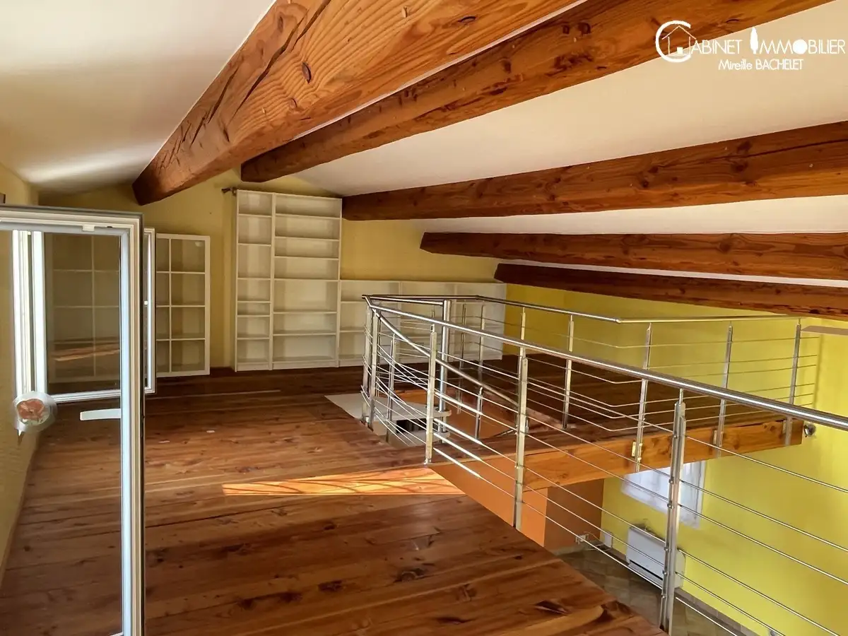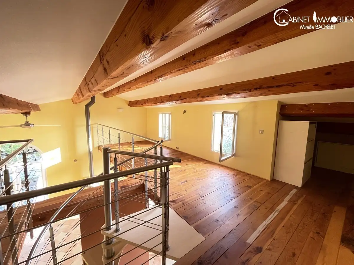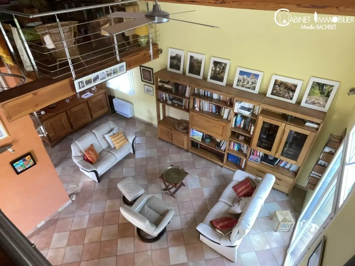 Plain pied de vie composé d'un séjour /salon de 47 m²,une mezzanine avce grande hauteur pouvant accueillir un salon, des bureaux, une bibliothèque ; grande cuisine équipée de qualité indépendante avec sortie sur la terrasse ; 2 chambres avec chacune leurs sanitaires.
