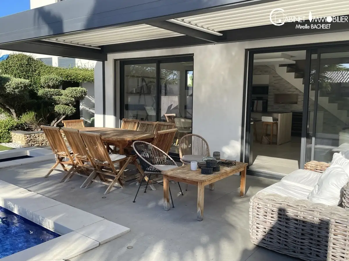 Villa contemporaine T5 de 2017 + garage communiquant avec la maison + Piscine + pergola bio climatique.